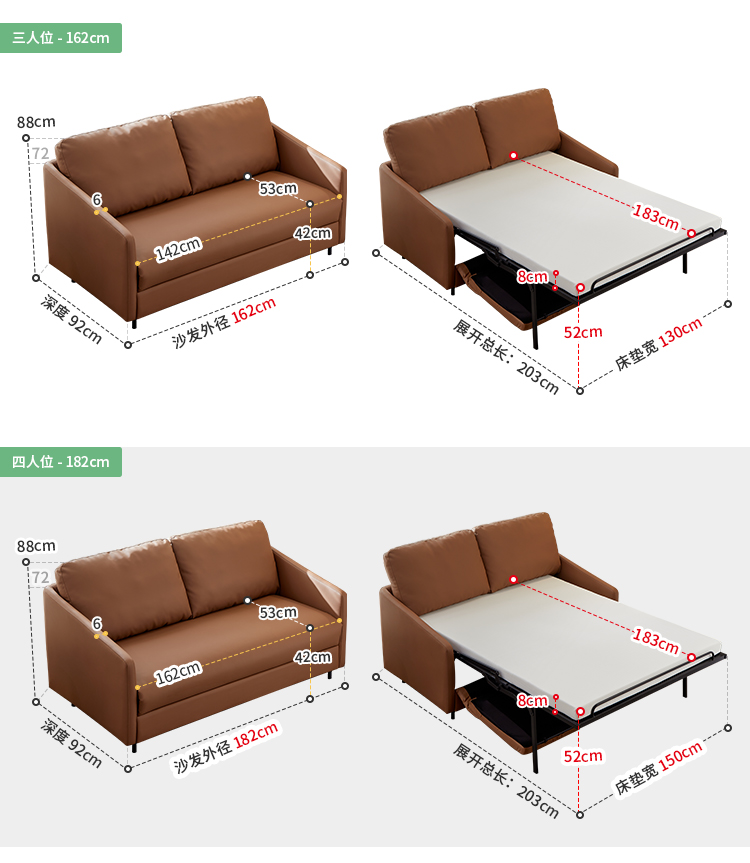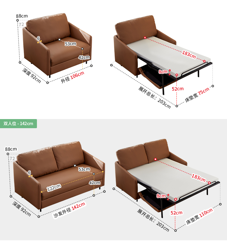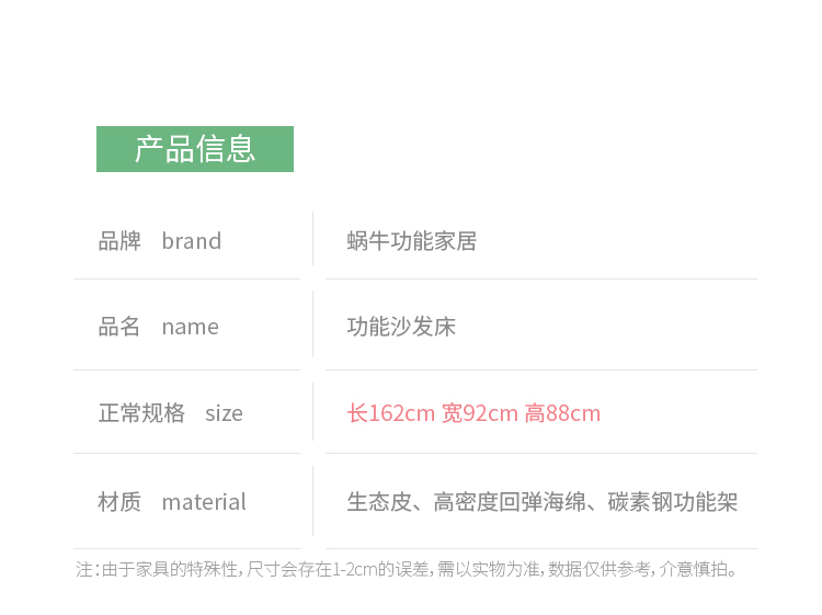 多功能手动沙发床-单人位...